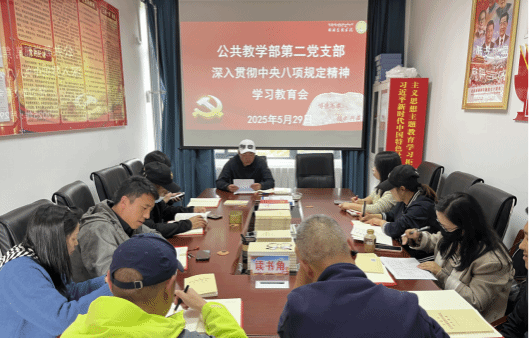 公共教学部教工第二党支部于2025年5月29日召开了深入贯彻中央八项规定精神学习教育专题学习教育会。此次会议旨在持续深化党员干部对中央八项规定精神学习教育的理解与落实,不断增强纪律意识和规矩意识,推动作风建设不断走深走实,筑牢反腐败思想堤坝。会议由支部书记刘西锋主持,全体党员参加。