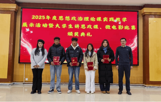 为深入学习贯彻党的二十届四中全会精神和习近平总书记关于学校思政课建设的重要指示,落实王君正书记对全区学校思想政治工作的批示,隆重纪念西藏自治区成立60周年,扎实推进“大思政课”建设,2025年12月20日上午,我校2025年度思想政治理论课实践教学展示活动暨大学生讲思政课、微电影比赛颁奖典礼在研究生苑隆重举行。马克思主义学院思政课教师与获奖学生代表等500余人齐聚一堂,以青春之声讲好新时代西藏故事,以生动实践打造“大思政课”育人新范式。