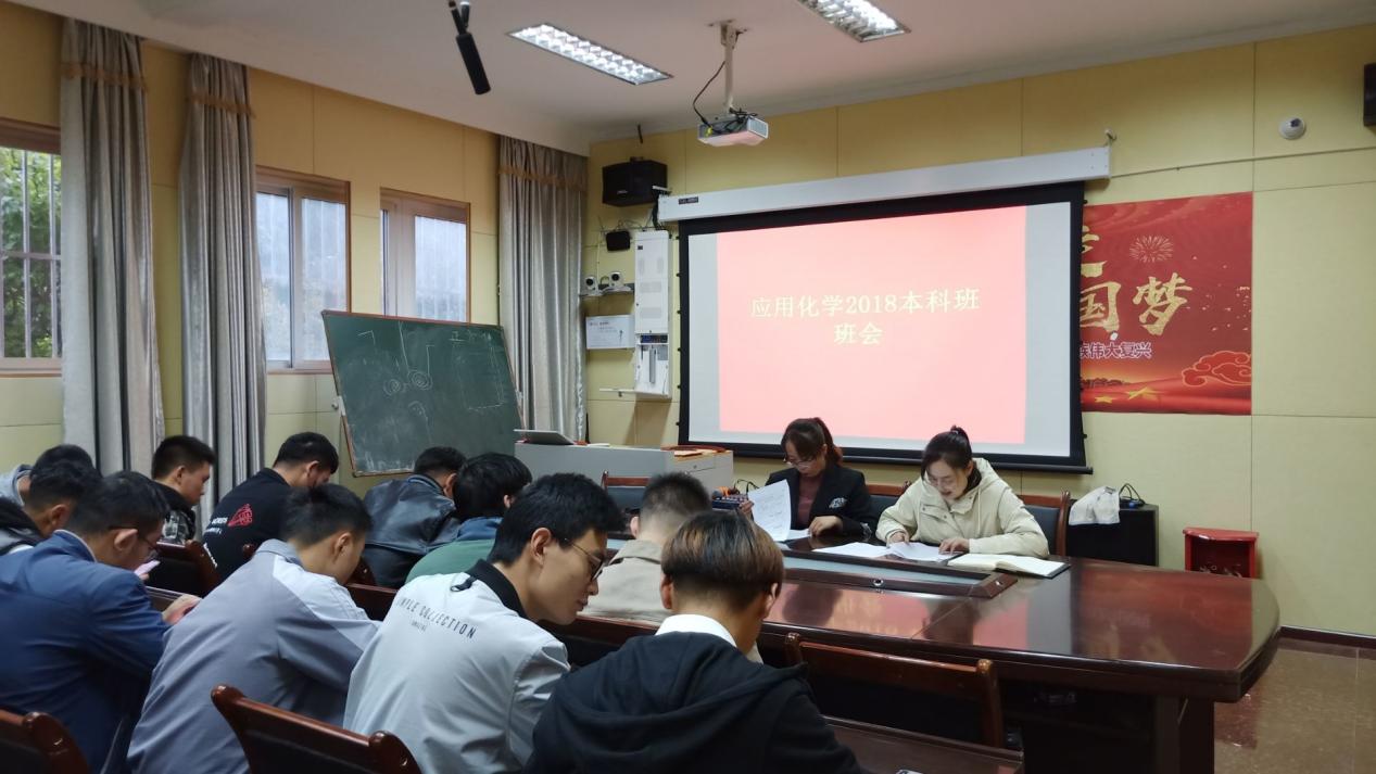 为使同学们明确学生任务,遵守学校纪律,公共教学部班主任罗珊老师组织应用化学18级本科班全体学生于9月9日下午19:30在公共教学部会议室开展主题班会。