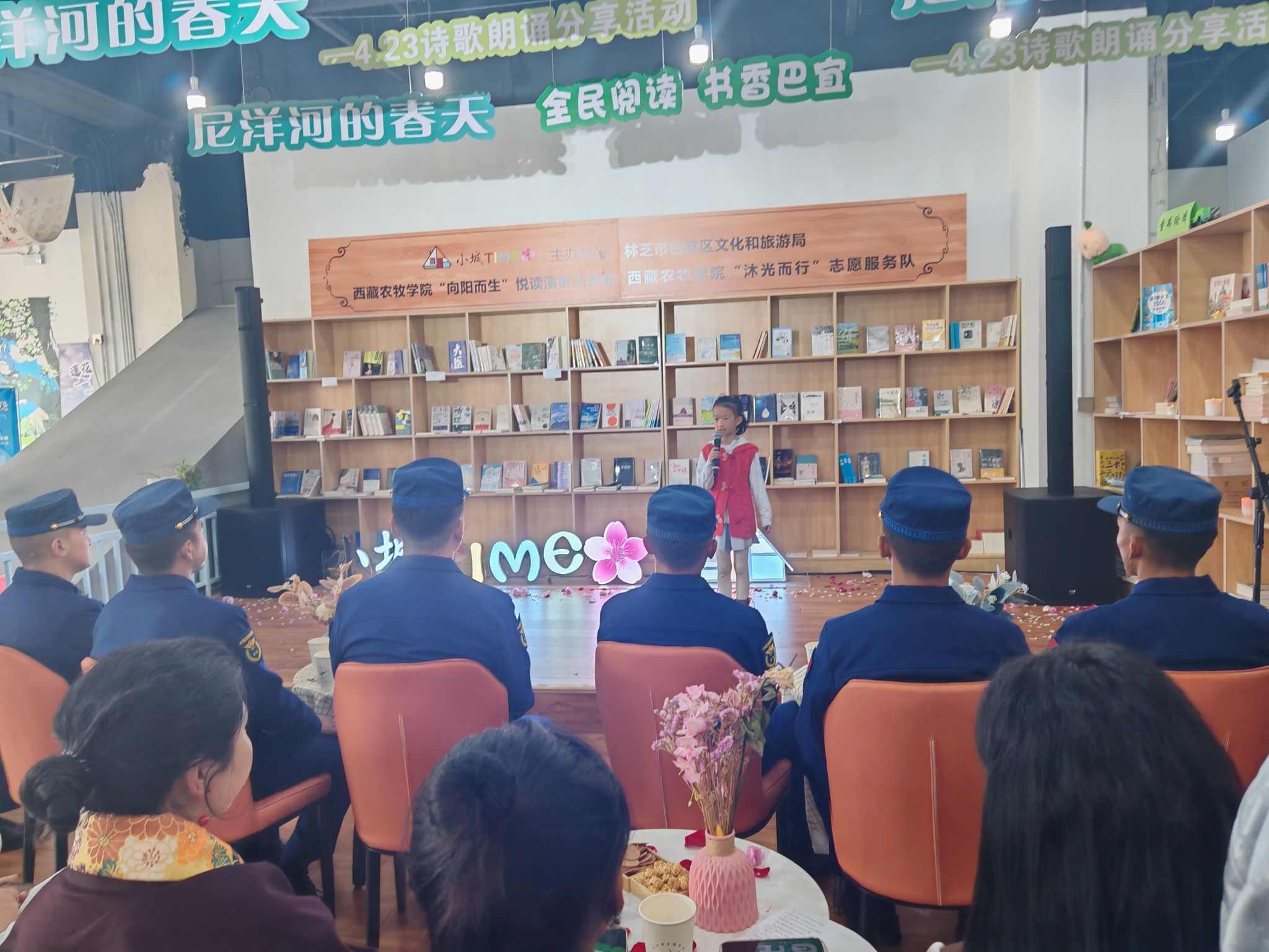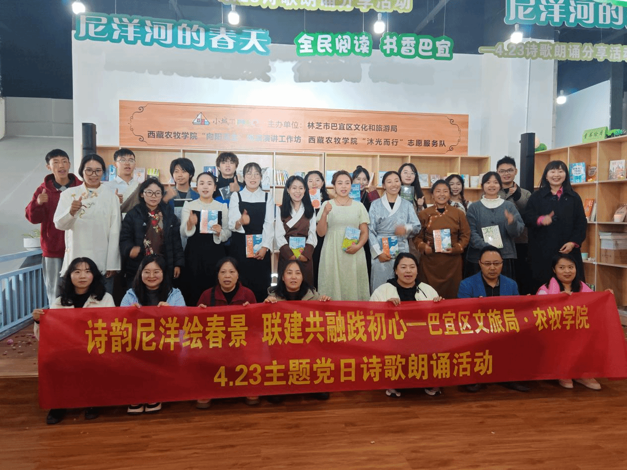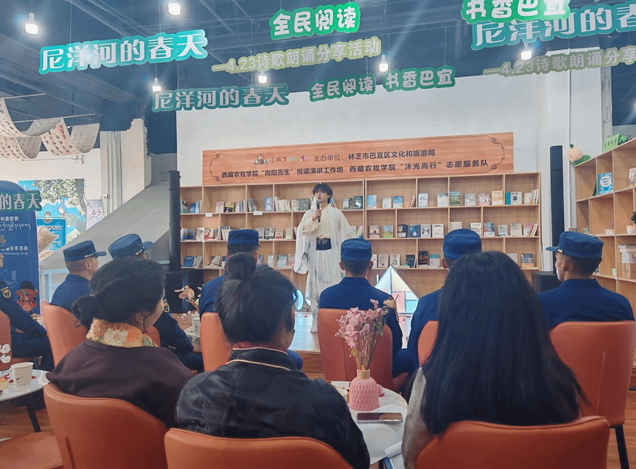 为深入推进全民阅读,营造浓厚的书香氛围,林芝市巴宜区文化和旅游局、西藏农牧学院“悦读演讲工作坊”与西藏农牧学院“沐光而行”志愿服务队联合举办了“尼洋河的春天——4.23诗歌朗诵分享活动”。此次活动吸引了巴宜区及西藏农牧学院众多读书爱好者参与,活动还特邀了巴宜区消防官兵及杰出校友于祖梁,于2025年4月23日上午10:00在风知我·文创书店盛大举行。