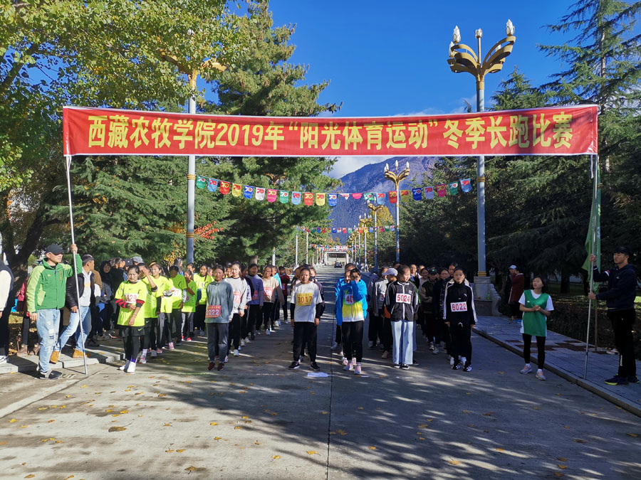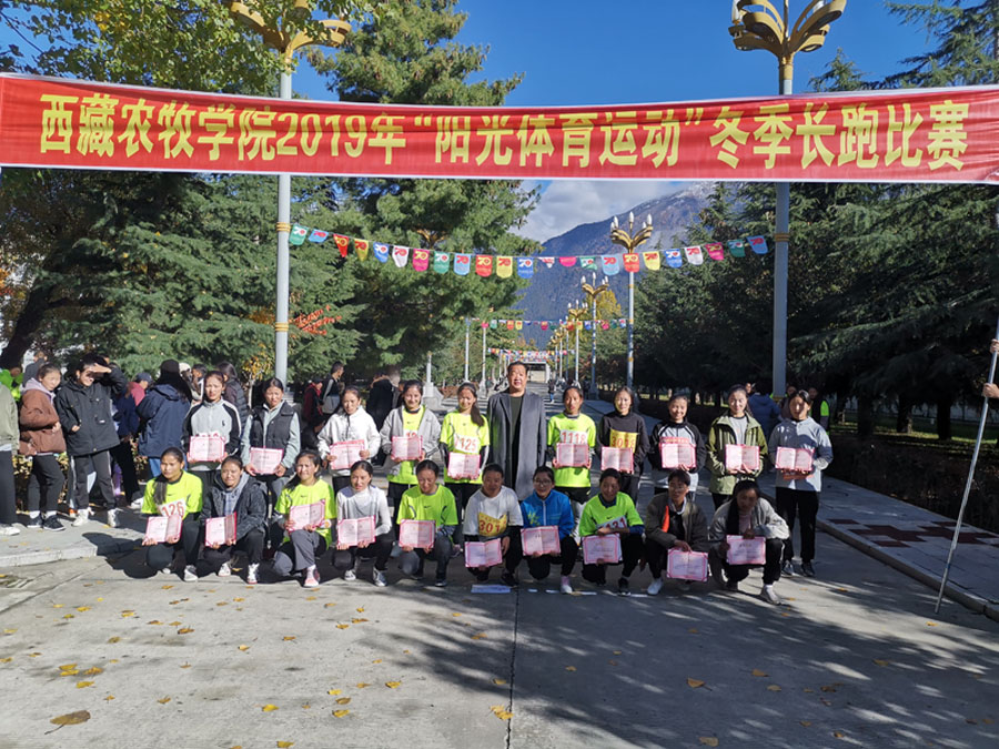 为庆祝建国70周年和西藏民主改革60周年, 深入开展“不忘初心、牢记使命”主题教育活动,贯彻落实中共中央、国务院《关于加强青少年体育增强青少年体质的意见》和《自治区教育厅、体育局、团区委关于开展全区学生“阳光体育”冬季长跑活动的通知》精神,大力开展亿万学生“阳光体育”运动,经体育运动委员会研究决定,于2019年11月2日举办了西藏农牧学院第十三届全国亿万学生“阳光体育”冬季长跑活动启动仪式暨2019年冬季长跑比赛。全院162名男、女运动员参加了比赛,经过顽强拼搏,植物科学学院19园艺哪旦桥觉同学、资源与环境学院17园林技术专科班白玛珠嘎同学分获学生男、女组冠军。