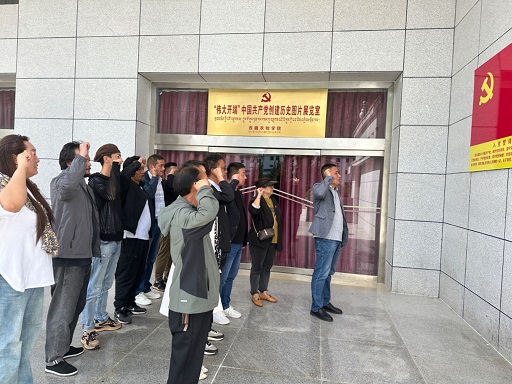 在校党史馆前,赵长锋同志带领大家重温了入党誓词。他强调要牢记入党誓词,坚定理想信念、不断叩问初心、牢记使命任务,把主题教育关于“学思想、强党性、重实践、建新功”的总要求落实到日常工作、学习、生活的方方面面,勇于担当作为、努力开拓创新、全心全意服务师生,不断解决师生的急难愁盼问题,为实现学校高质量发展和提升后勤服务保障能力贡献自己的一份力量。