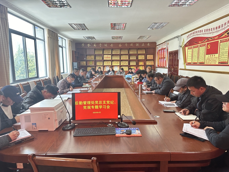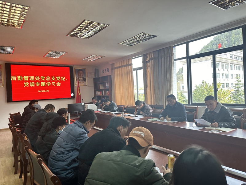 为了进一步加强党的纪律建设,切实提高党员干部的纪律观念和规矩意识,4月12日上午,后勤处党总支组织全处党员召开了“党纪、党规”专题学习会,会议由处党总支书记普穷同志主持。