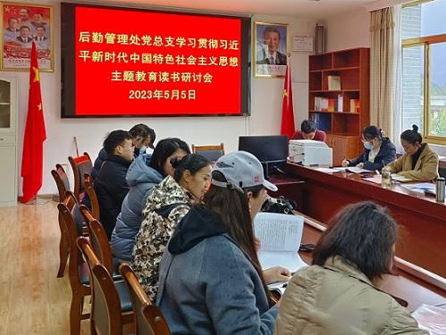 5月5日下午,后勤管理处党总支开展学习贯彻习近平新时代中国特色社会主义思想主题教育读书专题研讨,会议由后勤管理处党总支副书记普穷主持。