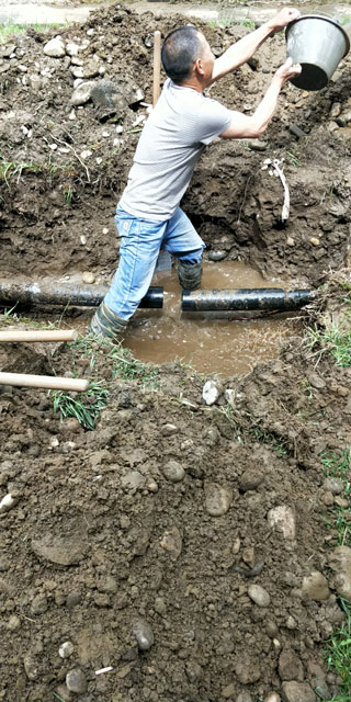 6月20日上午8时,一号实验楼值班员在例行每日房前屋后巡视时发现实验楼东侧草坪上有积水,而且有一股清水从地下不停的冒出。值班员及时向物业中心反映后,物业中心第一时间到现场进行查看,确认是一号实验楼供水管道损坏。