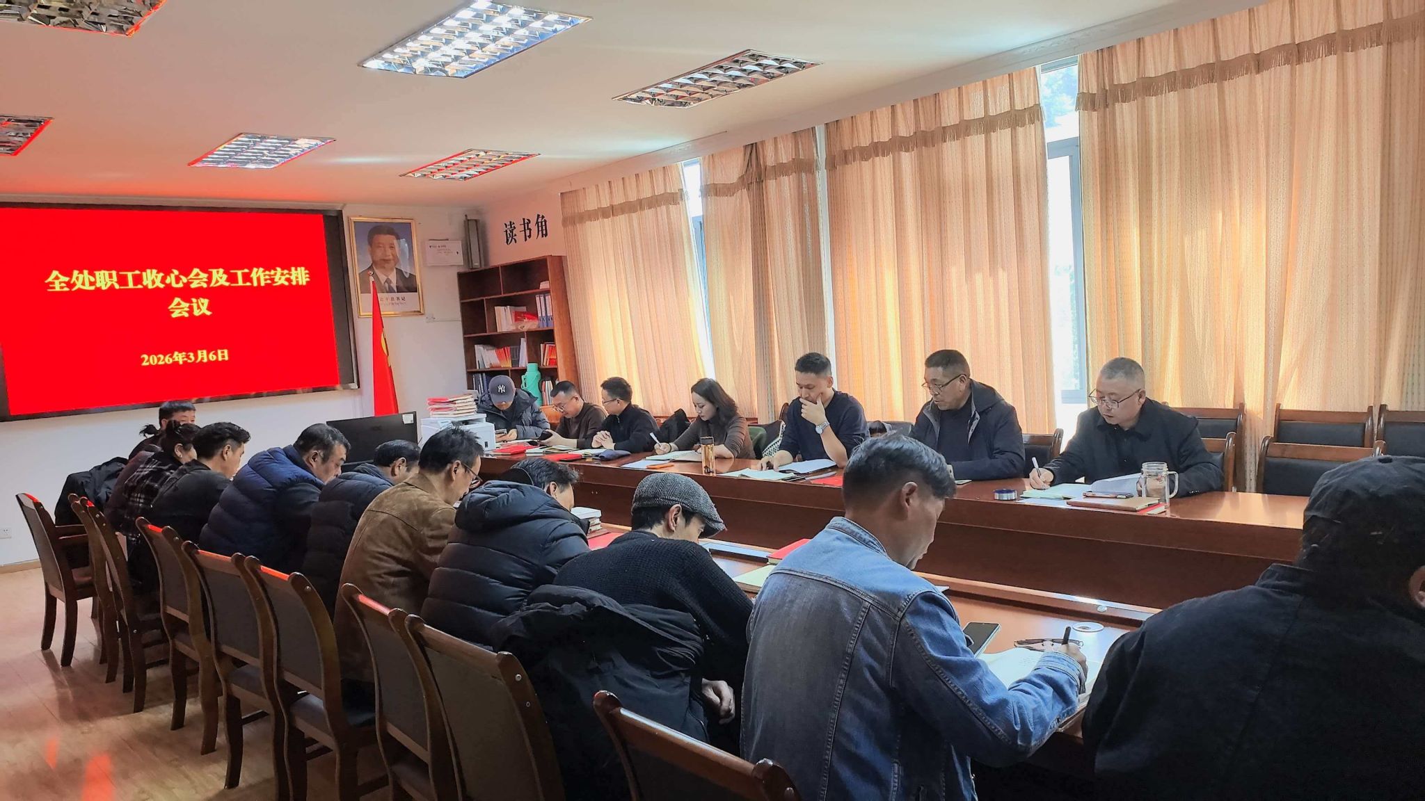为迅速收拢假期状态,凝聚工作合力,保障 2026 年春季学期后勤服务工作平稳有序开展,3月6日,我处召开春季开学收心会暨工作安排部署会。会上,根据后勤服务职责对新学期各科室工作进行了统筹部署明确工作节点与核心任务,强调要以高标准推进各项工作落地。全体职工要深刻领会核心要义,将思想与行动统一到学校春季开学整体部署上来,迅速切换至工作状态,一是筑牢安全防护防线。聚焦学生安全教育,梳理薄弱环节,强化安全知识宣传与实操培训;...