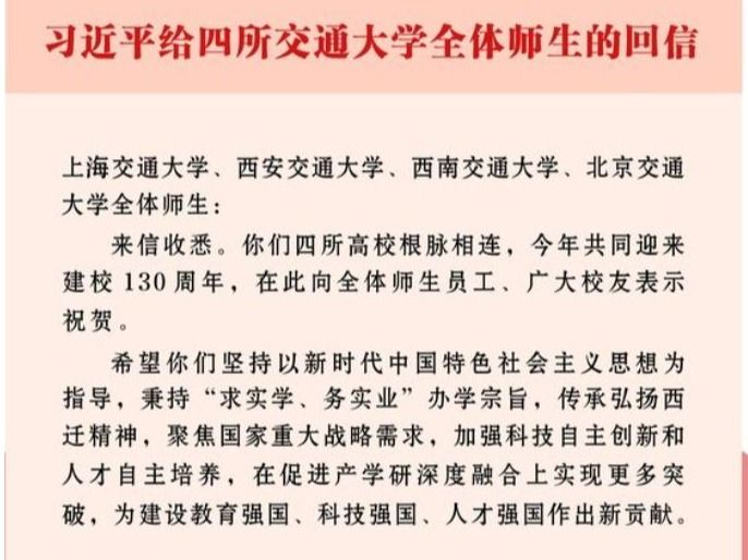 习近平:传承弘扬西迁精神聚焦国家重大战略需求为建设教育强国科技强国人才强国作出新贡献