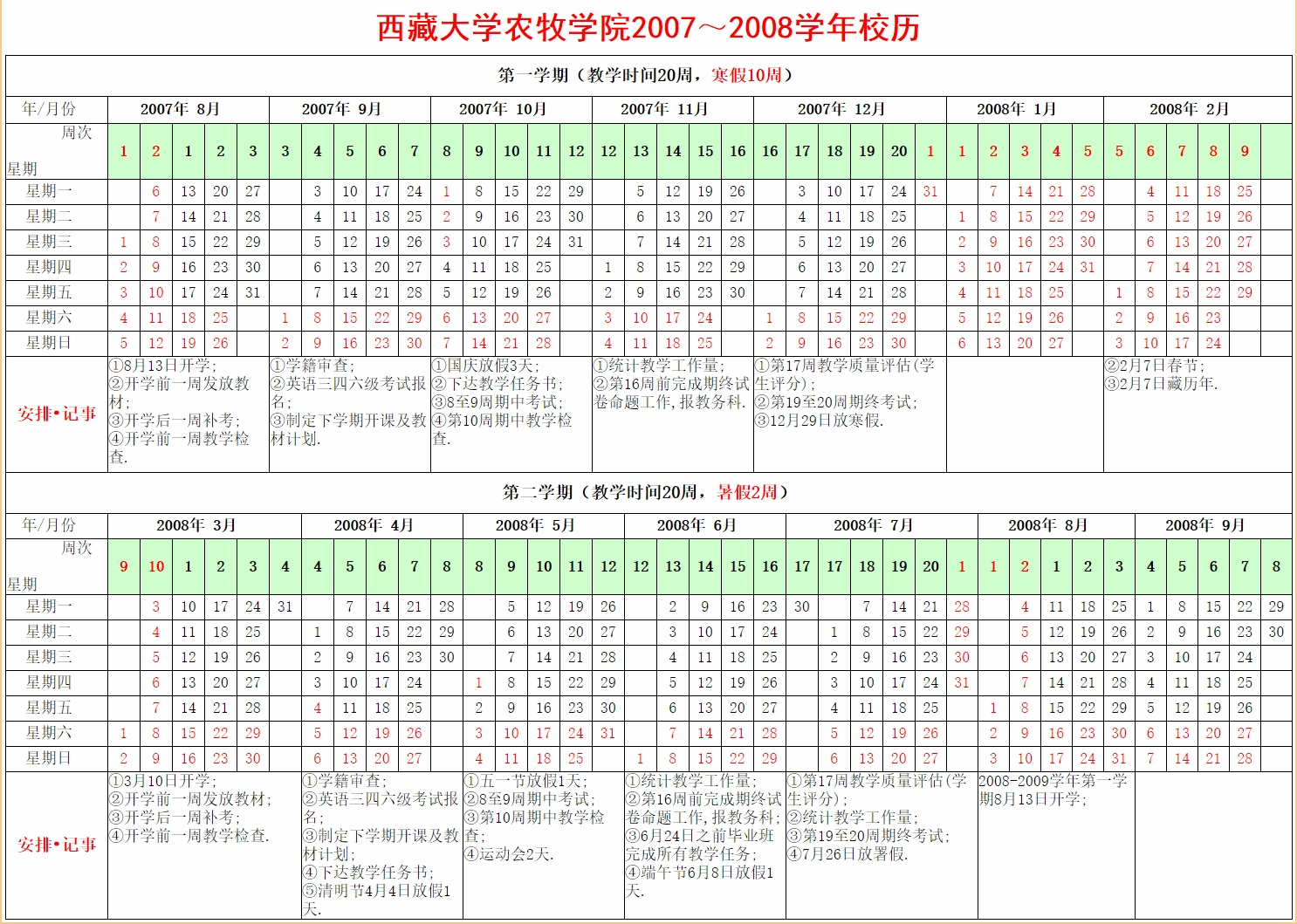 以往校历