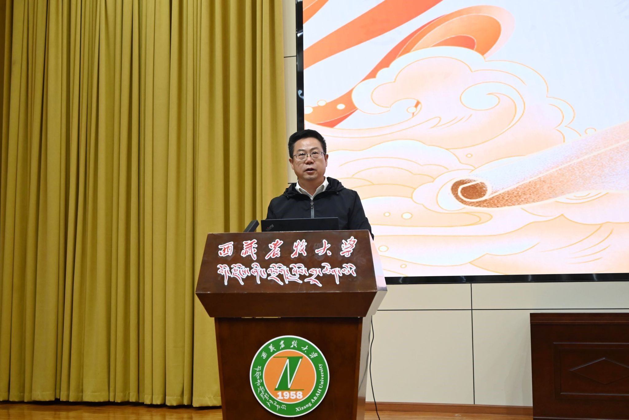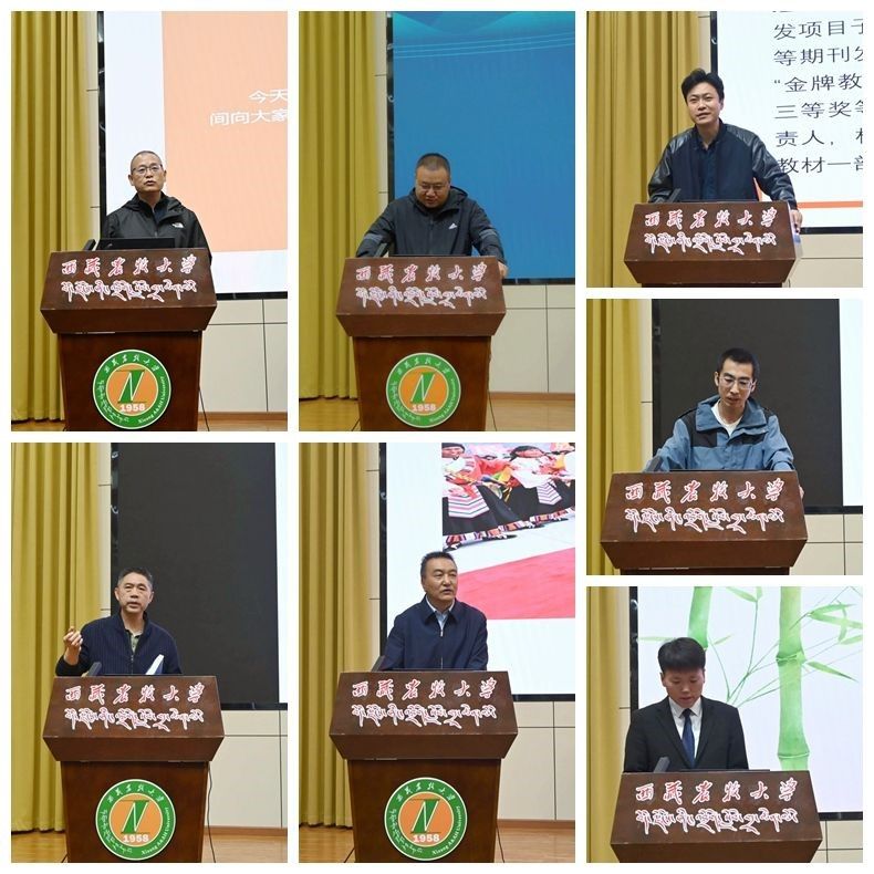 捐赠仪式结束后,活动进入了精彩的老师荐书环节。纪委副书记、纪检监察处处长王元林、资源与环境学院副教授侯磊、植物科学学院副院长史玮、动物科学学院教授魏学红、食品科学学院党委书记旦巴次仁、水利土木工程学院教师苏立彬、生态环境学院教师宋小广等七位来自不同学科的老师依次上台,分享了他们心中的好书。如《毛泽东选集》《生命是什么》《西藏植被》《上帝掷骰子吗?》《大学生廉洁文化读本》等。各位老师准备充分,解读深入细致,从作品的背景、内容精华,到阅读感悟等,娓娓道来,引人入胜。