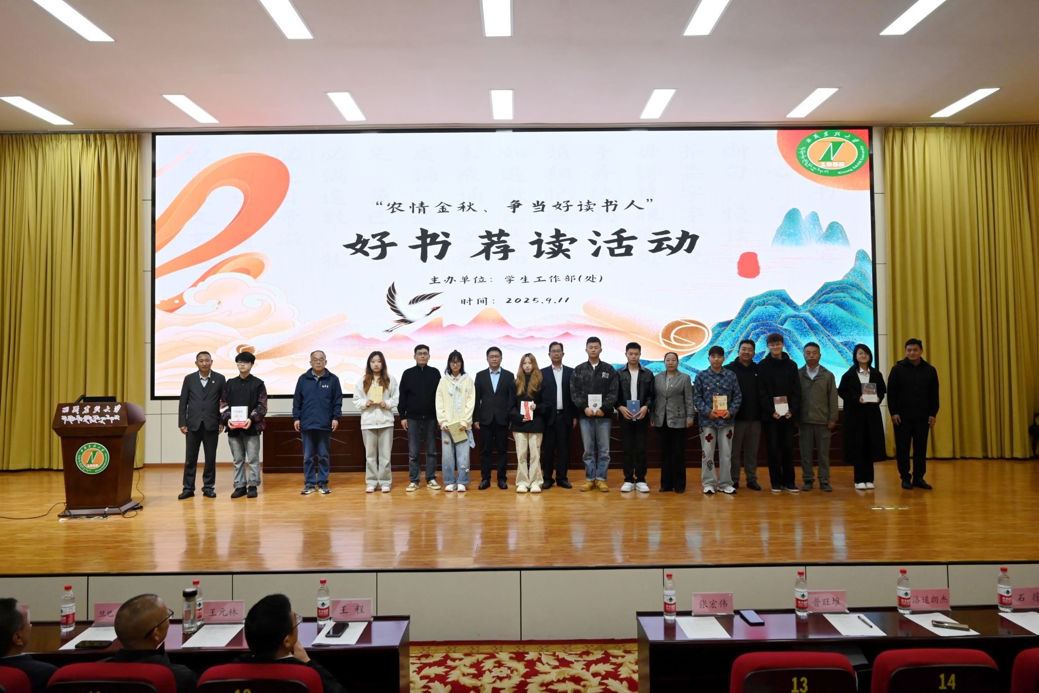 2025年9月11日上午,我校在一号行政楼学术报告厅举办“农情金秋、争当好读书人”好书荐读活动。