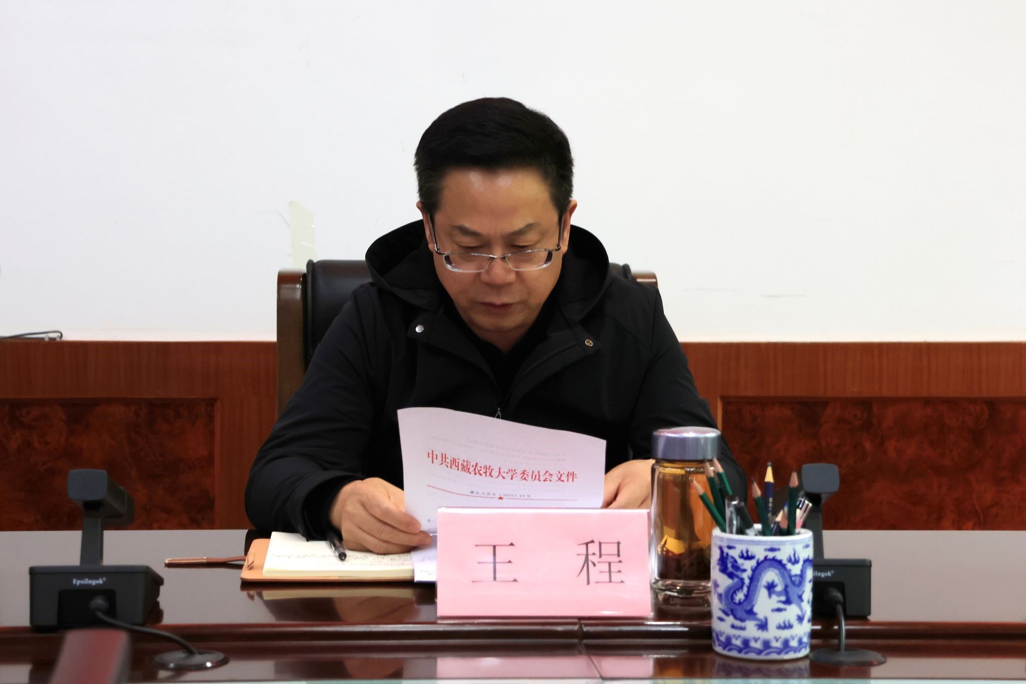 学校党委书记、副校长张兴堂主持会议并讲话。学校党委副书记王程宣读了学校党委任免职决定,学校党委委员、纪委书记尼玛作廉政教育。