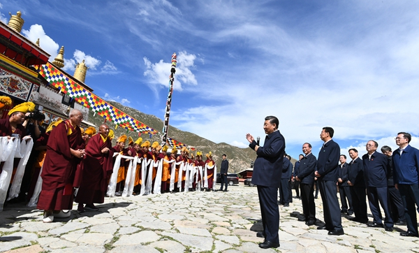 7月23日上午,习近平听取了西藏自治区党委和政府工作汇报,对西藏各项工作取得的成绩给予肯定,希望自治区党委和政府团结带领广大干部群众,同心协力,砥砺前进,努力建设好团结富裕文明和谐美丽的社会主义现代化新西藏。