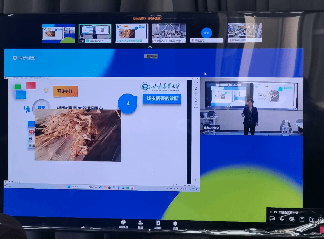 2024年11月20日,在智慧树平台的支持下,我校2022级植物保护本科班的81名学生与甘肃农业大学、宁夏大学的大二学生参加了此次同步课堂,三校教研西行项目组成员观摩甘肃农业大学徐秉良教授的授课。