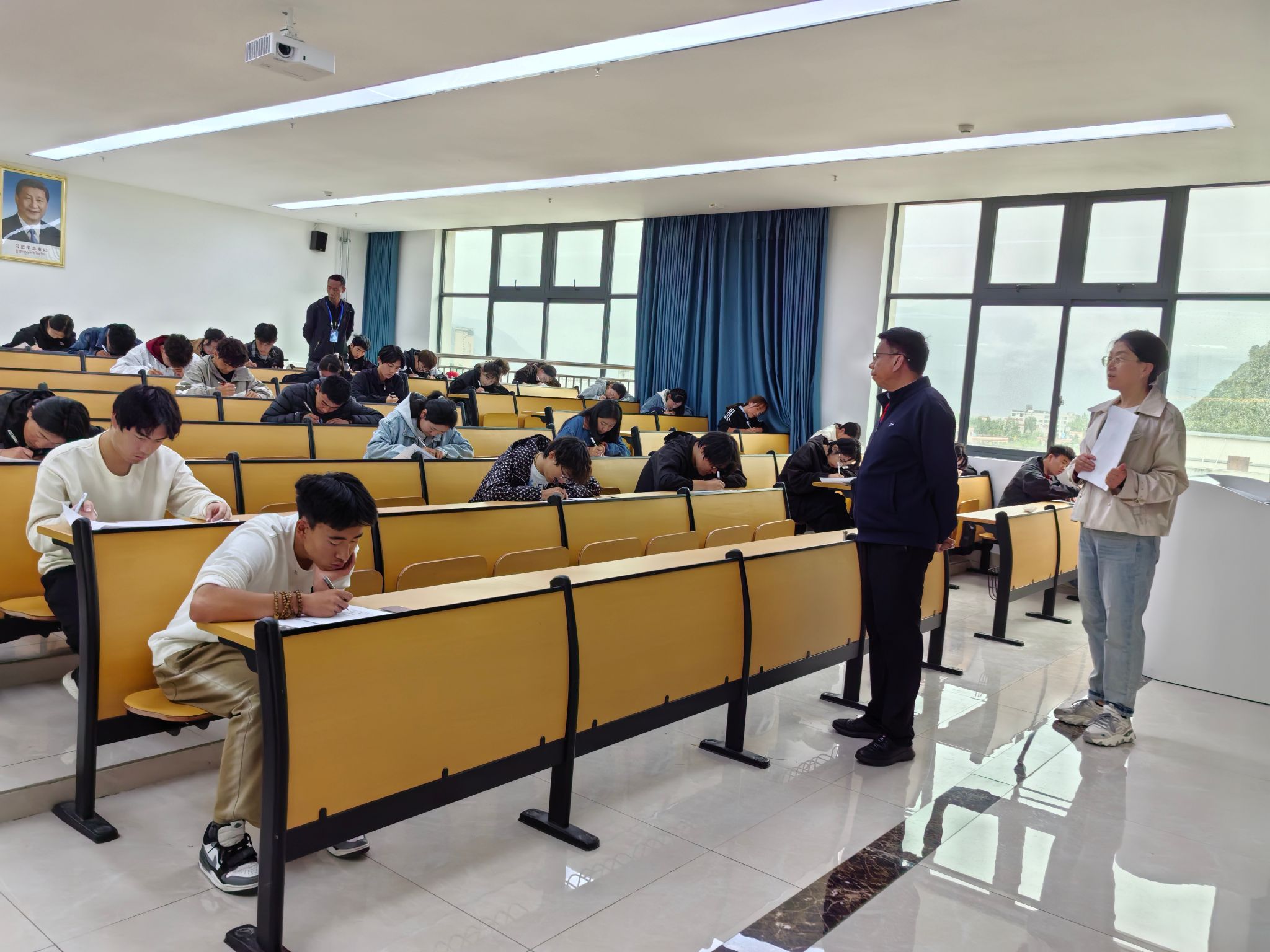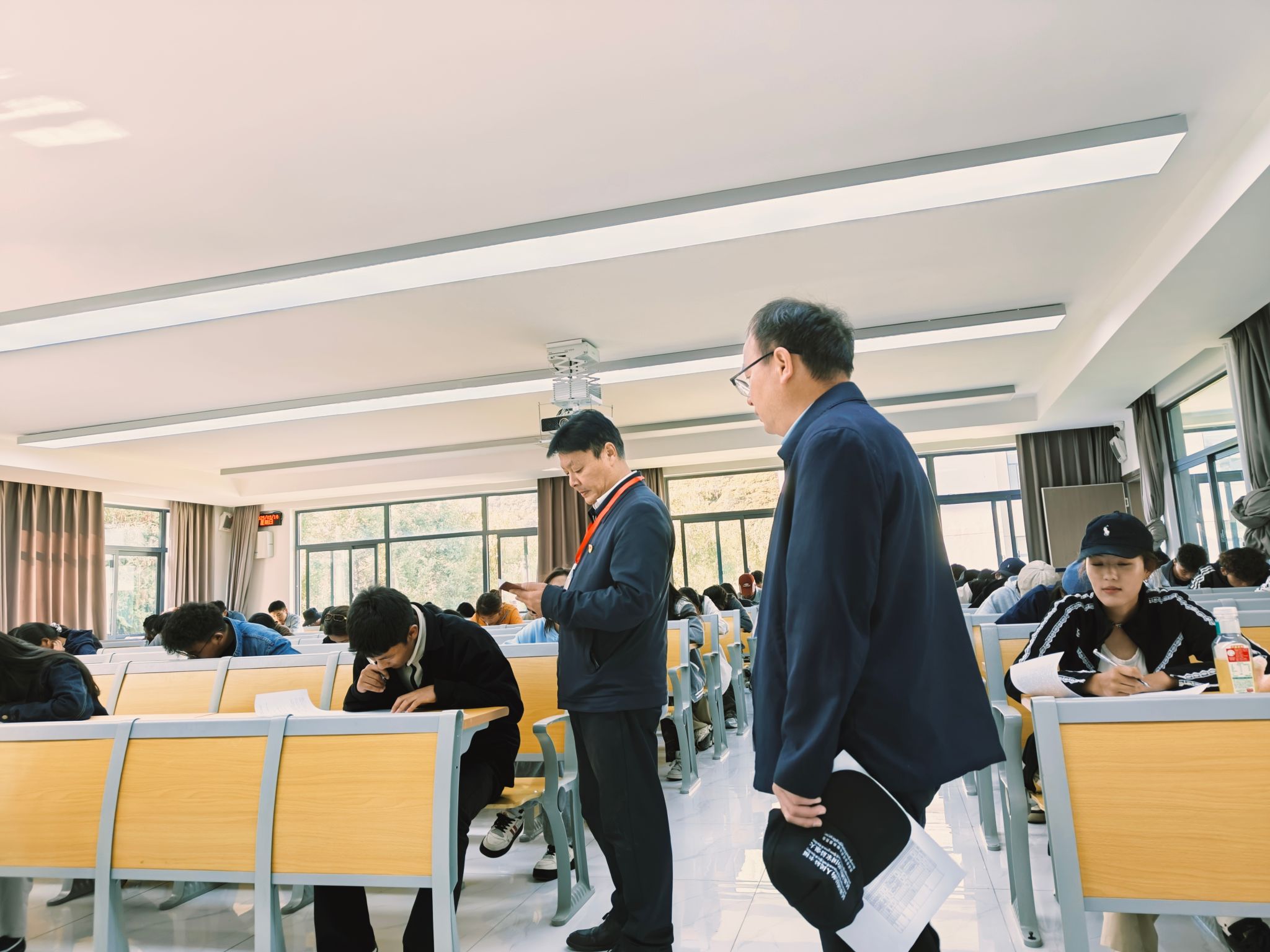 考试期间,学校领导、教务处、有关教学单位深入考场开展巡考工作,认真查看考试组织以及考风考纪等有关情况,详细听取了教务处及有关教学单位的工作汇报。期末考试是落实人才培养工作的重要环节,对于检验学生学业、衡量教师教学、推进教学改革具有重要作用。