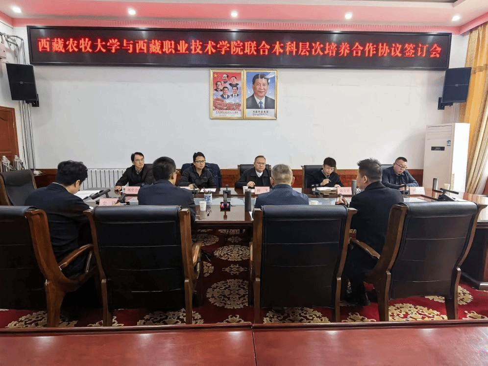 2026年4月9日,西藏农牧大学与西藏职业技术学院联合本科层次人才培养合作协议签订会在一号行政楼三楼党政会议室举行。西藏农牧大学党委委员、副校长邢震,西藏职业技术学院党委副书记、院长陈飞出席会议,两校相关部门及二级学院负责人参加会议。会议由西藏农牧大学教务处处长张永青主持。
