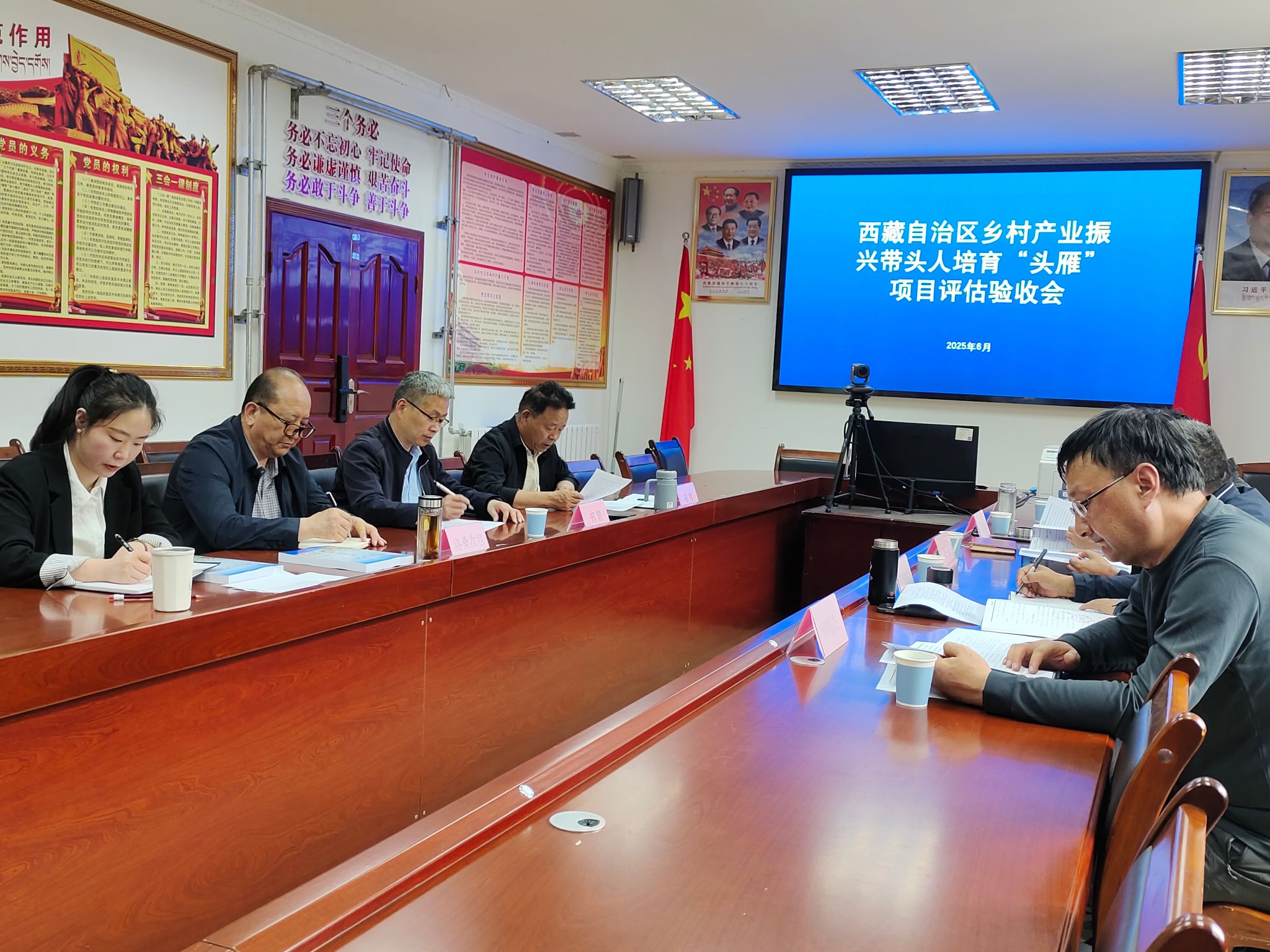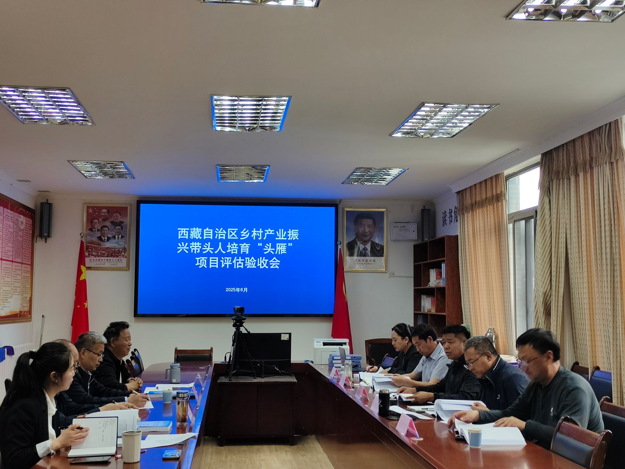 6月18日下午,西藏自治区2023年乡村产业振兴带头人培育“头雁”项目(以下简称“头雁项目”)评估验收组一行五人赴我校继续教育学院开展“头雁”项目评估验收工作,校党委委员、副校长邢震,继续教育学院党总支书记、副院长洛桑次旦,继续教育学院全体工作人员参加会议,会议由继续教育学院院长布穷主持。
