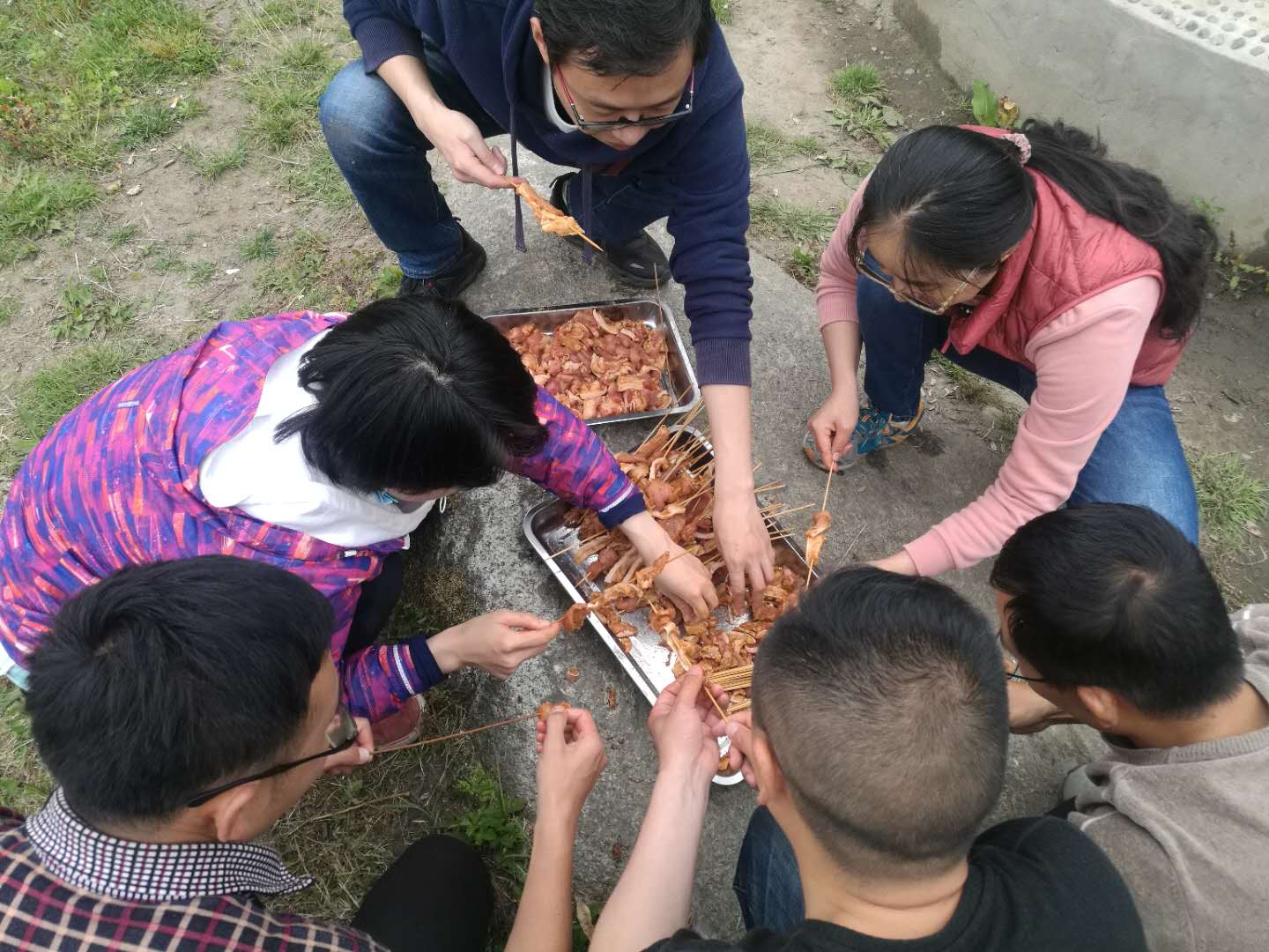 上午十时许到达农牧学院后山活动点,稍作休息后;全体职工及职工家属一起动手洗菜、切菜、穿串、生火、烧烤等,在欢声笑语和嬉笑打闹中大家度过了一个上午,下午两点左右,烧烤结束,游戏活动开始了,全体老师及家属参与了萝卜蹲、瞄炮等集体活动,随机教工根据个人爱好自行组队玩扑克牌、象棋、打羽毛球、钓鱼等活动。下午6:00左右,大家开始清洁用具、打扫环境,整队回家。