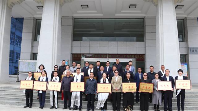 校领导娄源冰、边巴次仁、强巴央宗为获奖的二级党委、党总支、直属党支部颁发了奖牌,为全体参赛选手敬献了哈达,并与他们合影留念。