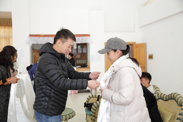 院党委书记、副院长云丹加措与副院长魏建荣、院党委办公室、教育工会负责同志一同,走访慰问了资源与环境学院张敏教授、植物科学学院旺姆教授、后勤管理处公益性岗位人员格拥三名一线在岗女教职工,为他们献上洁白的哈达,送上节日的祝福和慰问金,详细询问他们的生活、工作和身体健康等情况,感谢他们多年来为学院发展改革稳定作出的贡献,勉励他们立足岗位本职,充发挥自身才能,继续为学院发展贡献力量。