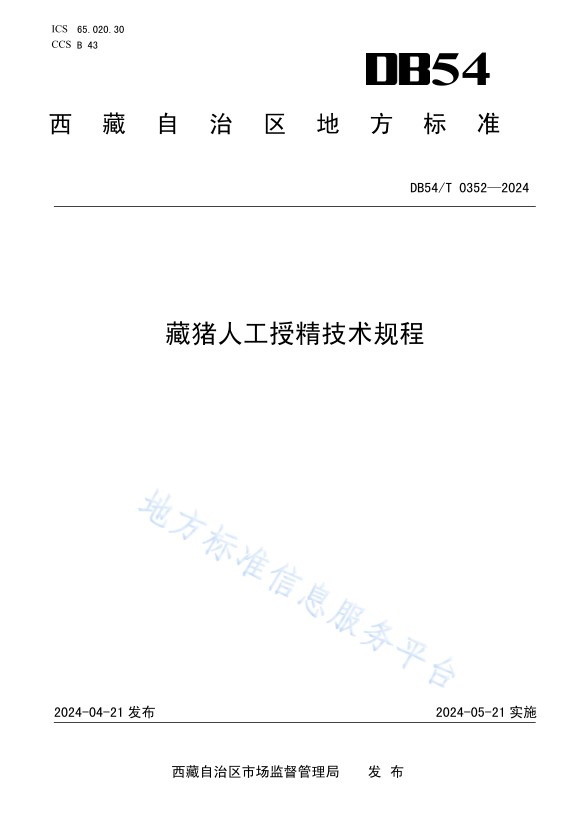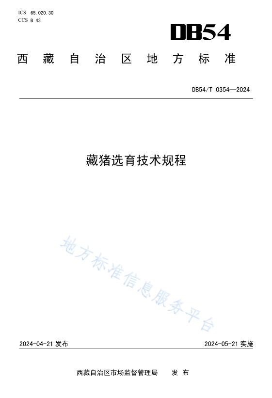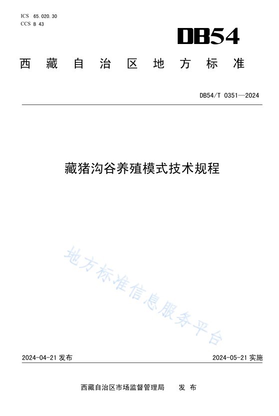 此次获批发布实施的六项地方标准为:《藏仔猪配合饲料》(DB54/T 0349-2024)、《藏仔猪饲养管理规程》(DB54/T 0350-2024)、《藏猪沟谷养殖模式技术规程》(DB54/T 0351-2024)、《藏猪人工授精技术规程》(DB54/T 0352-2024)、《藏猪育肥配合饲料》(DB54/T 0353-2024)、《藏猪选育技术规程》(DB54/T 0354-2024)。此六项地方标准规定了藏猪哺乳仔猪、断奶仔猪、保育仔猪的饲养管理;藏仔猪、生长育肥猪对配合饲料的要求;藏猪选育过程中选育方案制定、选育基础群组建、选育核心群组建、选种、遗传评估、后备猪选留、选配与世代间隔、良种登记、数据管理和遗传交流;藏猪种公猪选留、驯化、采精,精液稀释、分装、贮存、运输以及输精和配种记录;藏猪沟谷养殖模式下技术要求、饲养管理等的技术规范和质量控制要求。