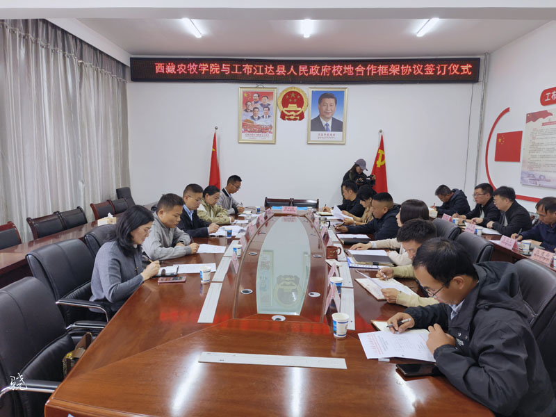在签约仪式现场,双方就合作具体事项进行了座谈交流。学校科研处、动物科学学院,工布江达县农业农村局、发改委、乡村振兴局、住建局、乡村兴农公司、娘蒲乡人民政府等部门参加活动。