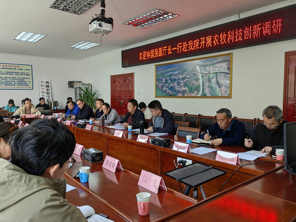 4月11日至12日,科技厅钟国强副厅长一行到我校考察自治区重点研发计划项目执行情况,并与我校科研处和各二级单位科研分管领导进行座谈交流,调研农牧科技创新工作。校领导郑维列、强巴央宗,科研处处长潘刚、副处长商鹏、罗红英、李奇先后陪同。