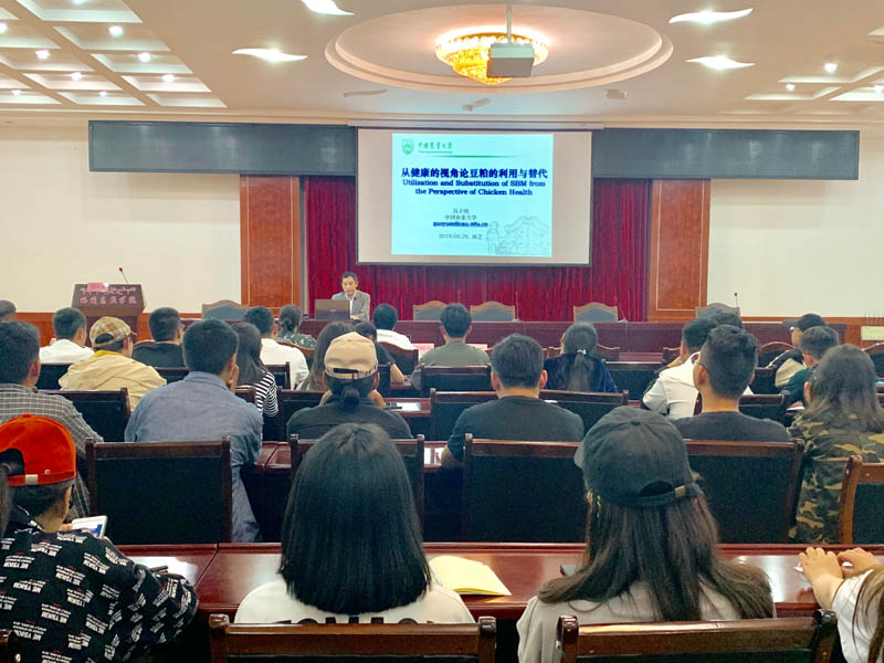 26日晚,在1号行政楼3楼中心会议室,中国农业大学专家为我院师生做了精彩的报告。分别为:呙于明教授“从健康角度论豆粕的可替代性”;胡晓湘教授“中国地方鸡种外貌性状的遗传学机制研究”;张然副教授“基因组编辑技术—家畜遗传改良的新利器”。