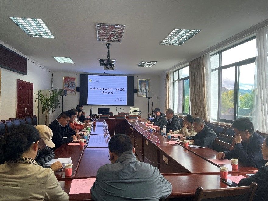 9月27日,自治区农业农村厅农业科技处处长胡剑武、中国农业科学院兰州兽医研究所研究员景志忠一行来我校调研,林芝市农业农村局党组成员、副局长熊玉梅陪同调研,西藏农牧学院党委委员、副院长邢震以及各二级单位相关领导参与座谈交流,会议由科研处李奇副处长主持。