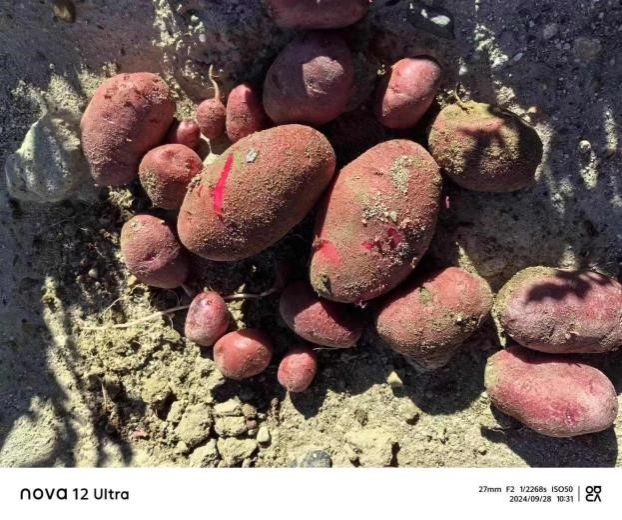 从近期的现场测产看,多种蔬菜亩产超过5000斤。其中,从6个品种里面筛选出耐抽薹白萝卜品种2个,单个萝卜重达5斤,亩产量在1万斤左右。5个菠菜品种表现均好,每亩可达到5000斤以上,根据当地的气候条件,每年可播种2季,理论产量每亩每年可达1万斤以上。从7个品种里面筛选出耐裂球的甘蓝品种4个,单个结球重在5斤左右,其中‘幕田玛丽’品种单球可达7斤,苤蓝单球重量4斤左右,大白菜单颗重10斤左右,这些蔬菜的净菜亩产量均在5000斤以上。马铃薯受播期影响,一些品种表现差,但从单株结薯数量、单薯重量看,有8个品种表现良好,最大单薯重量可达半斤,单株产量在1斤以上,为下一年大面积推广筛选出了优良品种。