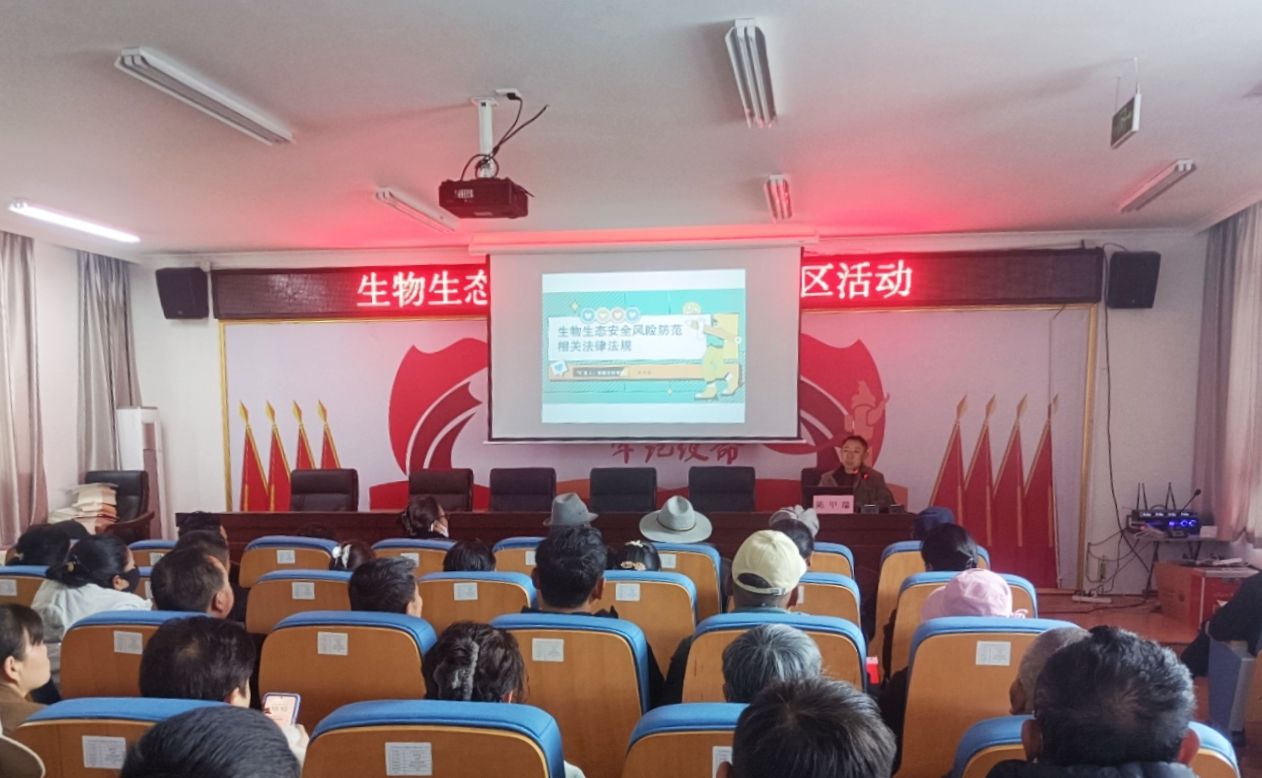 学校高原生态研究所陈甲瑞老师受邀作题为《外来入侵物种防治》专题讲座。陈老师通过图文并茂的形式,向林芝市和巴宜区生物生态保护重点单位、白玛岗街道共计200余干部群众,讲解区内莲子草、曼陀罗等14类农业重点防控外来入侵物种的危害、识别方法及防治措施。陈老师结合本地生态特点,呼吁公众“不能随意携带不明生物入境”,要时刻保持高度警惕,防治外来物种入侵,增强防控意识,鼓励大家成为“生态安全哨兵”。
