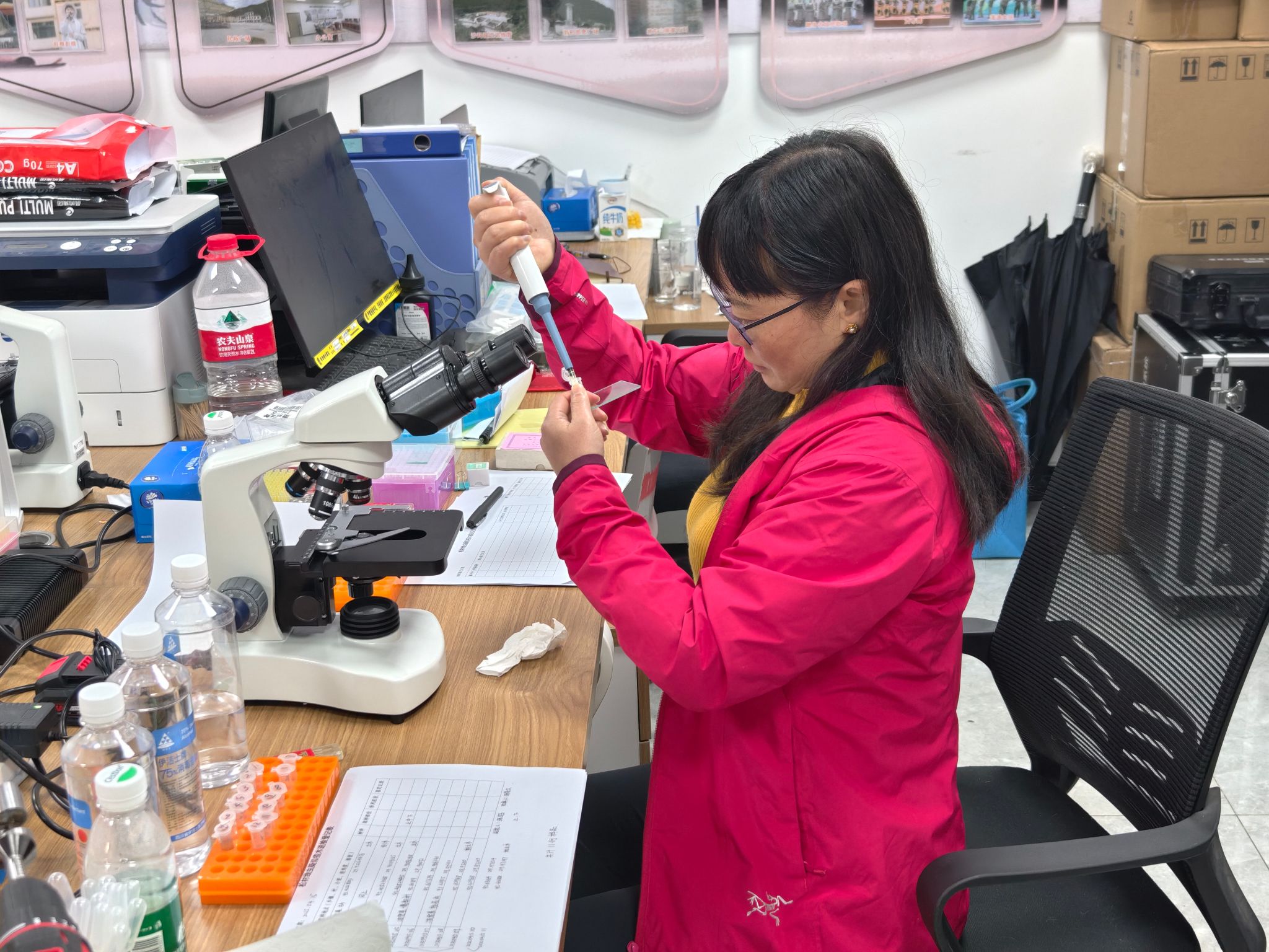 培训在下察隅镇松材线虫病检疫检验临时实验室中开展,培训内容丰富且实用,涵盖了室内线虫分离、临时玻片制作、显微镜下精准甄别雌雄成虫关键形态特征的技巧,以及快速分子检测技术等。几位学员通过将松材线虫形态学与分子生物学检测方法有机融合,全面且精准地掌握了松材线虫病的检测技术,在专业技能上得到了显著提升。