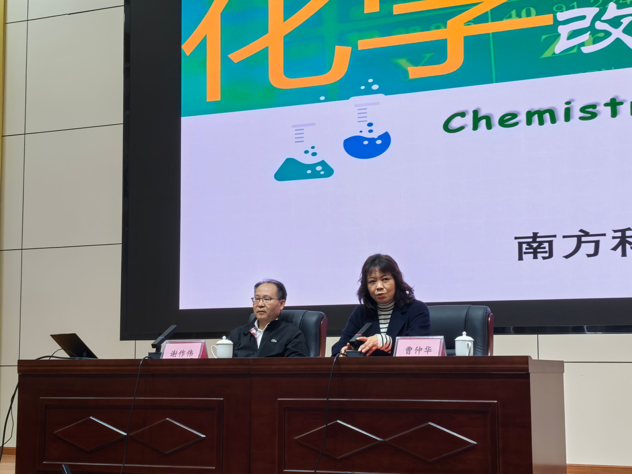5月12日,金属有机化学家、中国科学院院士、香港科学院院士、南方科技大学讲席教授、香港中文大学卓敏化学讲座教授谢作伟应邀在学校一号行政楼报告厅做了题为“化学改变我们的生活”的科普讲座。此次活动由学校党委委员、副校长曹仲华主持,全校200余名师生参加。