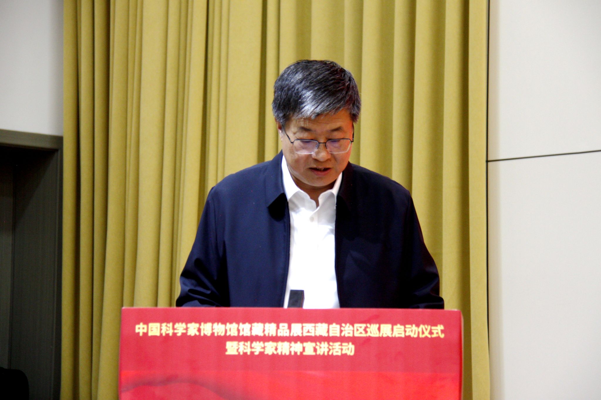 龚世林主持仪式,全体与会者观看主题片《底色》,通过影像回顾中国科技工作者奋斗历程。白元平在致辞中指出,展览全景式呈现了中国科技工作者在中国共产党领导下矢志报国、服务人民的情怀,以及在科技强国建设中取得的卓越成就与精神品格。曹仲华勉励师生以展览为契机,深化科研创新、科普服务与科学家精神传承的融合,为西藏经济社会高质量发展及国家战略提供支撑。