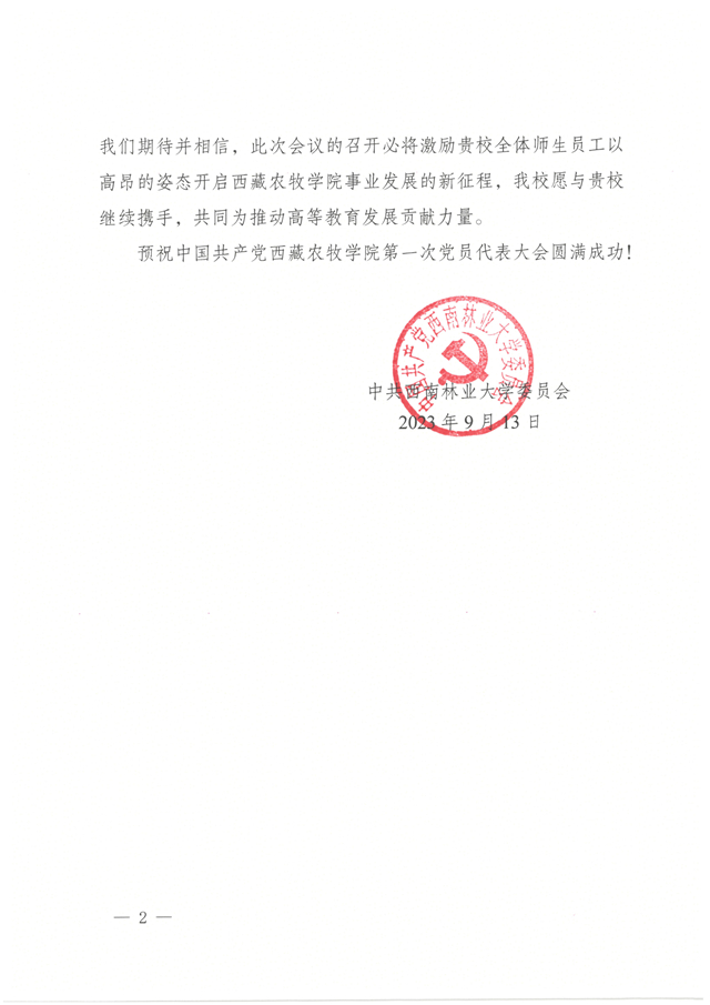 中共西南林业大学委员会发来贺信