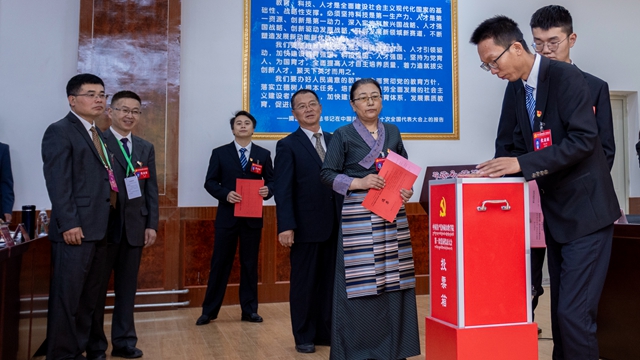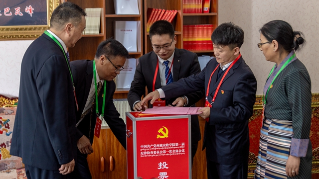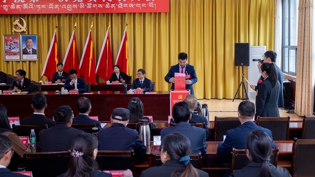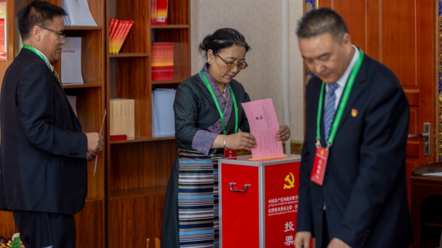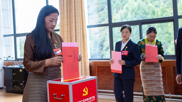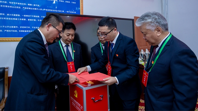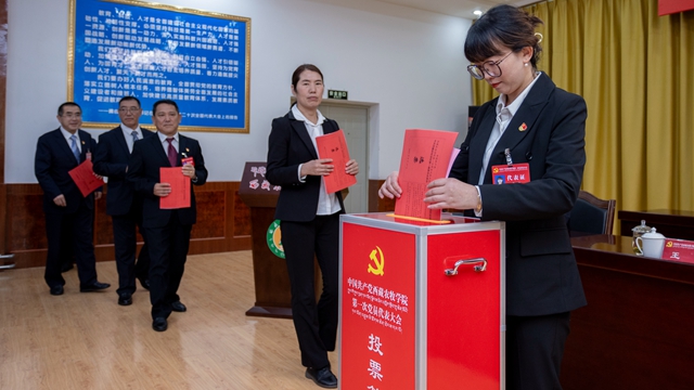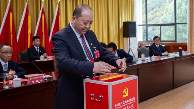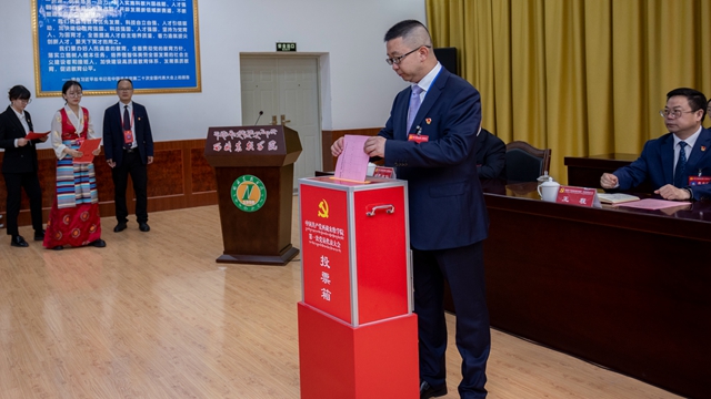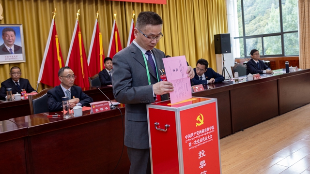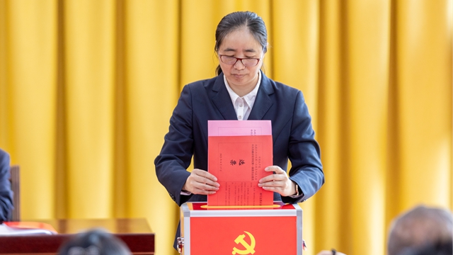 在大会监票、计票人员的监督下,全体党员代表认真填写选票,并郑重投出了神圣的一票。