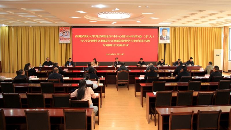 2026年3月31日,西藏农牧大学召开党委理论学习中心组学习会暨树立和践行正确政绩观学习教育读书班专题研讨交流会。校党委书记、副校长张兴堂主持会议并讲话,在校党委班子成员、各二级党组织负责同志参加会议。