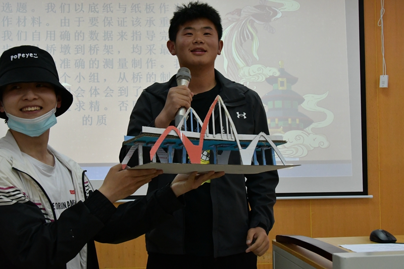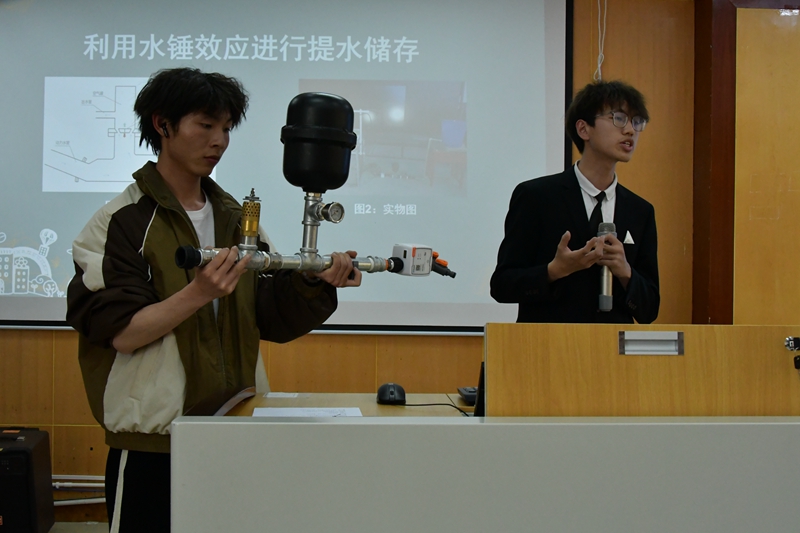 本次竞赛主要围绕专业知识科普、专业巨匠事迹、专业科技应用、专业文化传播等内容,以文字、绘画、视频和手工作品多种形式展现。比赛中,各参赛队带来了形式多样、内容丰富的作品,涉及科技创新、学术交流、科学普及等方面,例如“奇迹笨小孩”队的实物制造—水锤泵提水灌溉系统、“吃饭不用排”队的手工制作桥梁—千里之桥、“耕读传家”队的书法作品《耕读传家》以及“蒸汽鸟队”的BIM建模软件应用等各式各样的作品,每一个作品都为现场同学们普及了专业科学知识,让大家收获颇深。整个比赛过程亮点纷呈、精彩不断,各位评委老师也给各组的作品进行精准的点评。