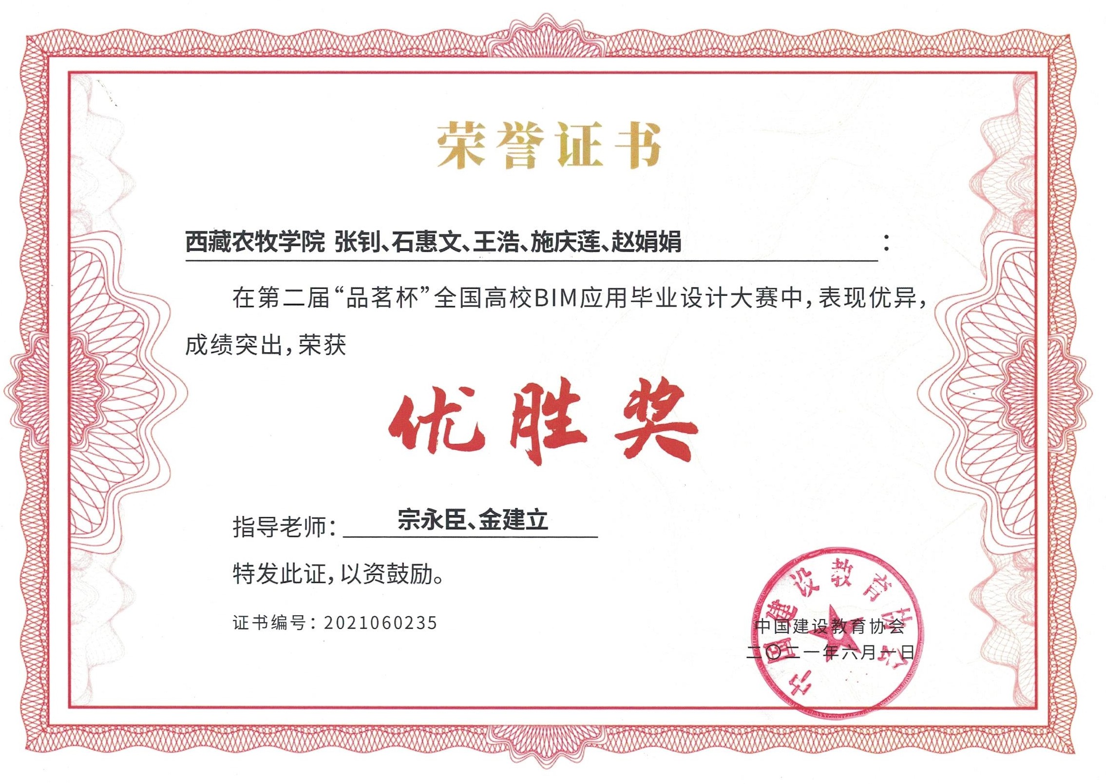 为全方位培养大学生的创新思维和实践动手能力,培养团队精神,激励大学生积极参加活动竞赛,我院土木教研室三名老师带队,组织2017级工程管理本科班共9名同学分为2队参加了本次全国高校BIM应用毕业设计大赛,大赛自2020年10月份面向全国高校征集作品,到2021年5月决赛落幕,历时近8个月,共有来自全国29个省(市、地区)的420所本科和中高职业院校、1420支参赛队伍、近8000名师生报名参赛。经过大赛晋级赛选拔,我院“匠心”队晋级全国总决赛,并取得了优胜奖。学院被评为第二届“品茗杯”全国高校BIM应用毕业设计大赛优秀组织奖,两位指导老师荣获优秀指导教师称号。
