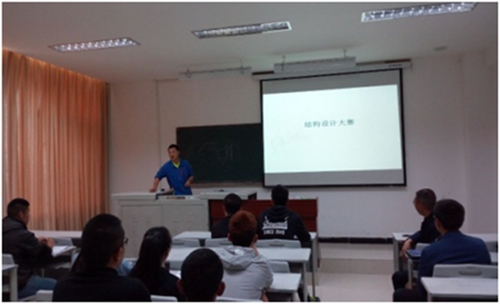 首先,由土木工程教研室的何军杰老师就模型外观设计、受力分析、数值计算等方面进行了详细的介绍,并举出了大量详实的图片,便于学生理解;其次,个别参赛队伍就各自设计的方案进行了介绍,土木工程教研室老师就结构设计方面的不足进行分析,并指出修改意见;最后,由王培清副院长对结构设计中应注意的问题,模型设计理念,模型受力分析计算进行了讲解。