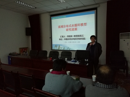 周祖昊教授主要从事二元水循环理论、流域水循环及伴生环境生态过程模拟、水资源规划与调度、流域综合治理与调控方面的研究。10月13日晚7时,在我校图书馆,周祖昊教授就本项目做了“流域分布式水循环模型研究进展”学术报告,我校有关教师和农业水利工程、水文与水资源、水利水电等专业学生和研究生到场听取了报告,开拓了对流域水循环模式研究方面的学术视野。