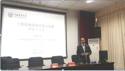 蒋秀根教授作的报告题目为《工程结构高效有限元分析理论与方法》,他主要从确定结构的本构模型出发,采用有限元的计算原理,计算杆件的应力应变,与常规的解析解进行误差分析,从而得出利用数值解计算的优劣。