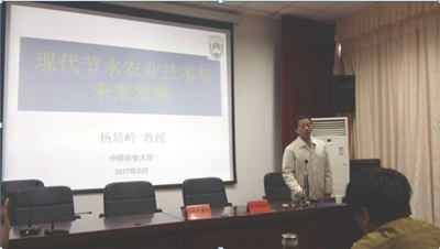 杨培岭教授作的报告题目为《现代农业节水技术与未来发展》,他从现代节水农业发展的需求,现代节水技术的应用及节水农业发展的新趋势三个方面对现代农业节水技术进行了较详细地讲解。