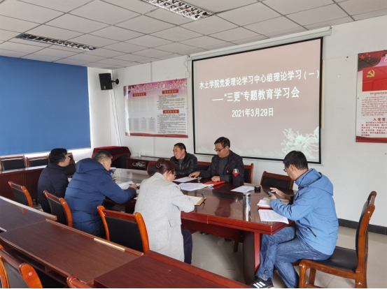 为认真落实“三更”专题教育工作安排,不断深入推进党史学习教育,2021年3月29日上午12:00,水土学院党委在学院会议室开展党委理论学习中心组理论学习会 “三更”专题教育学习会,学院全体党委委员参加了学习会议,学习会由党委书记达瓦主持并作了动员讲话。