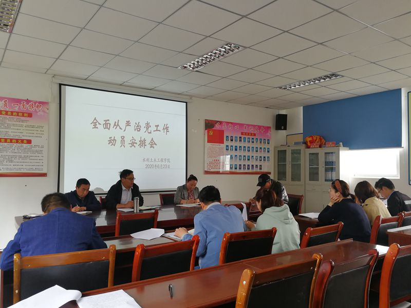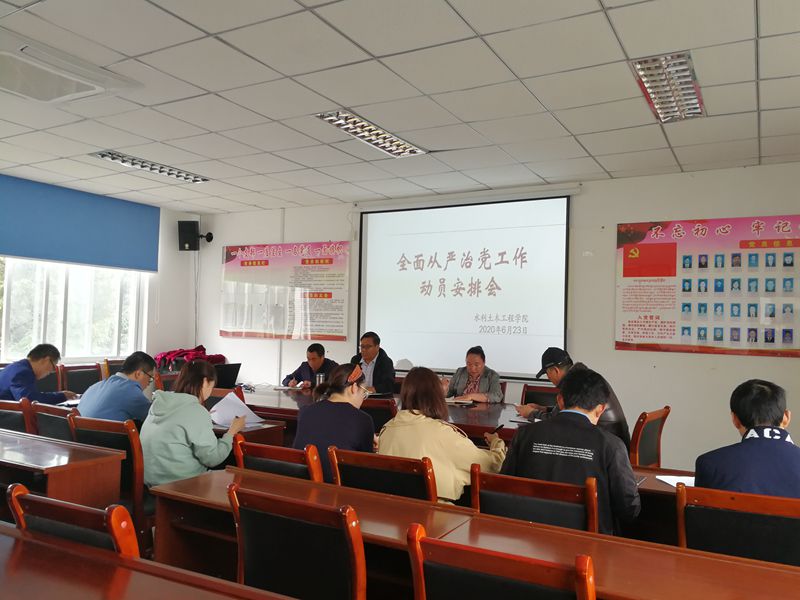 2020年6月23日,水土学院党委在学院会议室召开了全面从严治党工作会议。学院党委书记、副书记、全体党委委员、师生党支部书记参加了会议,学院党委书记达瓦主持会议。