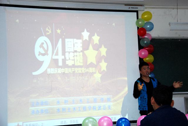 为了迎接中国共产党“九十四”周年华诞,进一步增强我院大学生对党的知识学习和理解,认真掌握中国共产党成长历程,培养大学生爱国主义热情,弘扬民族精神和时代精神。结合我院迎“七一”、庆“七一”系列活动安排、自治区语言文字规范示范校建设和大学生思想政治教育相关要求,水利土木工程学院于2015年6月22日上午10:00——11:30时,在学校4104教室举办了“感党恩、跟党走”为主题的迎七一演讲比赛。学院副书记、辅导员、院团学干部、学生党支部书记,各班学生代表等100余人参加了比赛。