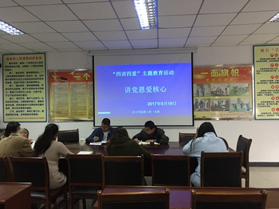 为深入贯彻落实吴英杰书记关于加强党员干部教育引导的重要指示精神,在深入开展的“讲党恩爱核心、讲团结爱祖国、讲贡献爱家园、讲文明爱生活,喜迎党的十九大胜利召开”主题教育实践活动中进一步加强教职工党员的思想政治教育,根据水土学院党委统一安排部署,2017年5月19日下午,我院教工第一在会议室、第二党支部在能动教研室分别开展了“讲党恩爱核心”“讲团结爱祖国”专题学习会。两个党支部的联系院领导参加了学习会。