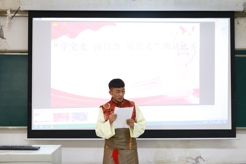为庆祝中国共产党建党一百周年暨西藏和平解放七十周年。同时也为了加强同学们对党史与新中国成立史的了解,督促同学们加强对党史的学习。水利土木工程学院于2021年6月5日下午15时30分在第四教学楼105教室举办主题为“学党史 强信念 跟党走”的朗诵比赛。参与本次比赛的有团总支书记续辉、常务副书记李威、副书记白玛旺堆、学生会主席郭煌、学生会副主席姜航及水利土木工程学院各支部积极分子。