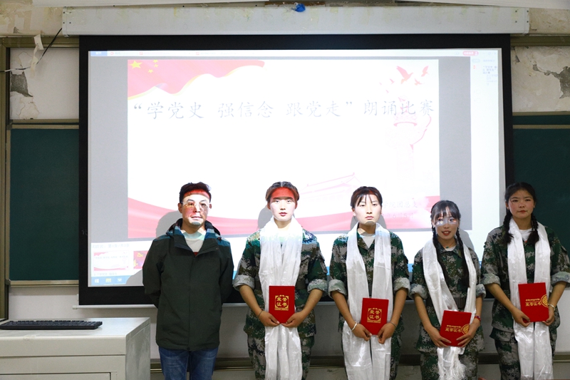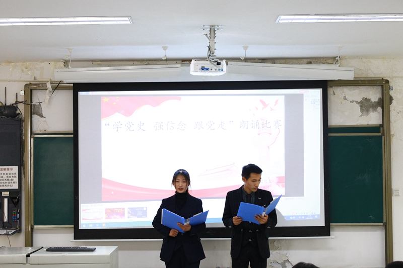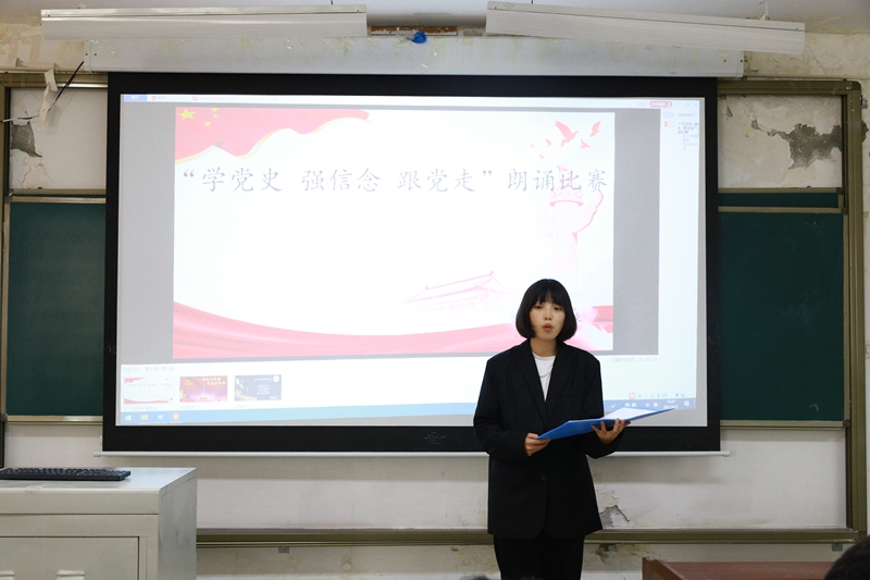 比赛开始,主持人宣读会场纪律、评分标准及比赛规则,随后选手们按抽签顺序依次上台进行了精彩的朗诵和表演。从他们的朗诵中我们了解到中国共产党是一个先进的政党,同时也充分认识到学习党史和党的发展历程的必要性。“欲知大道,必先为史”,历史是最好的教科书。学习党史、新中国史、改革开放史、社会主义发展史是坚持和发展中国特色社会主义、推进党和国家事业继续向前的一门“必修课”,这门功课是广大党员的必修课,并且必须修好。学习党史国史是对宝贵初心的回望。“一切向前走,都不能忘记走过的路;走得再远、走到再光辉的未来,也不能忘记走过的过去,不能忘记为什么出发”。了解我们党领导人民进行艰苦卓绝的斗争历程、中国近代以来170多年的斗争史、中国共产党100年的奋斗史、新中国70年的发展史。中国共产党人带领中国人民推翻了帝国主义、封建主义、官僚资本主义三座大山,建立新中国。成为执政党之后,我们党又团结带领中国人民完成了社会主义革命,确立了社会主义基本制度。党史、新中国史是一部部精神上的史诗。党是旧时代的希望光芒,没有共产党就没有新中国。随后团总支书记续辉对本次活动做了总结,他强调在本次活动中会场纪律有待提高,要求各支部要加强对对党员、入党积极分子的管理以及之后的工作中要加强对人才的培养。通过本次朗诵比赛坚定了同学们对党的信念,要坚持党的领导,铭记民族精神的核心、特色社会主义道路及时代精神,大学生要学好专业文化知识,与实际实践相结合。同时对此次参赛选手的表现予以了肯定,强调在后续的比赛中希望参赛选手可以做到脱稿的这一目标。最后由各评委为获奖选手颁奖,主持人宣布本次朗诵比赛圆满结束。