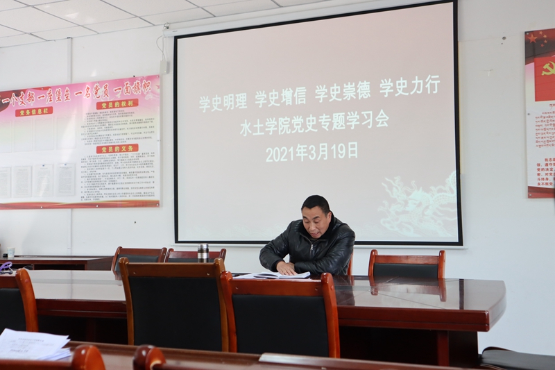 我院党委高度重视党史学习教育工作,在活动谋划、开展形式、落地效果上下功夫,确保党史学习教育接地气、有声势、见实效。2021年3月19日下午3:30,水土学院党委在学院会议室开展了党史学习教育专题学习会。学习会由党委副书记、院长黎普明主持,学院无课的全体教职工参会。