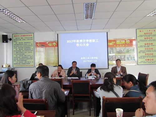 为认真做好新学期开学工作,积极营造师生乐学乐教、校园安全和谐的氛围, 2017年8月12日上午,我院组织召开教职工收心大会,全体教职工参会。会议由我院党委书记达瓦主持。
